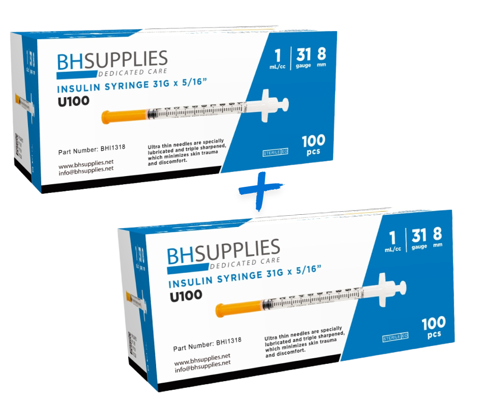 DOUBLE Box of 100: Insulin Syringes 31G 1ml/cc 5/16" (8mm) is backordered and will ship as soon as it is back in stock.